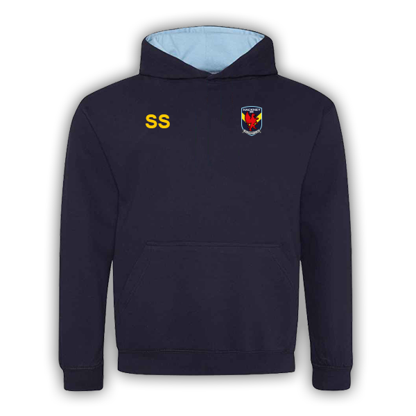 Main club hoody with contrast hood in club colours available in adults ad juniors sizes